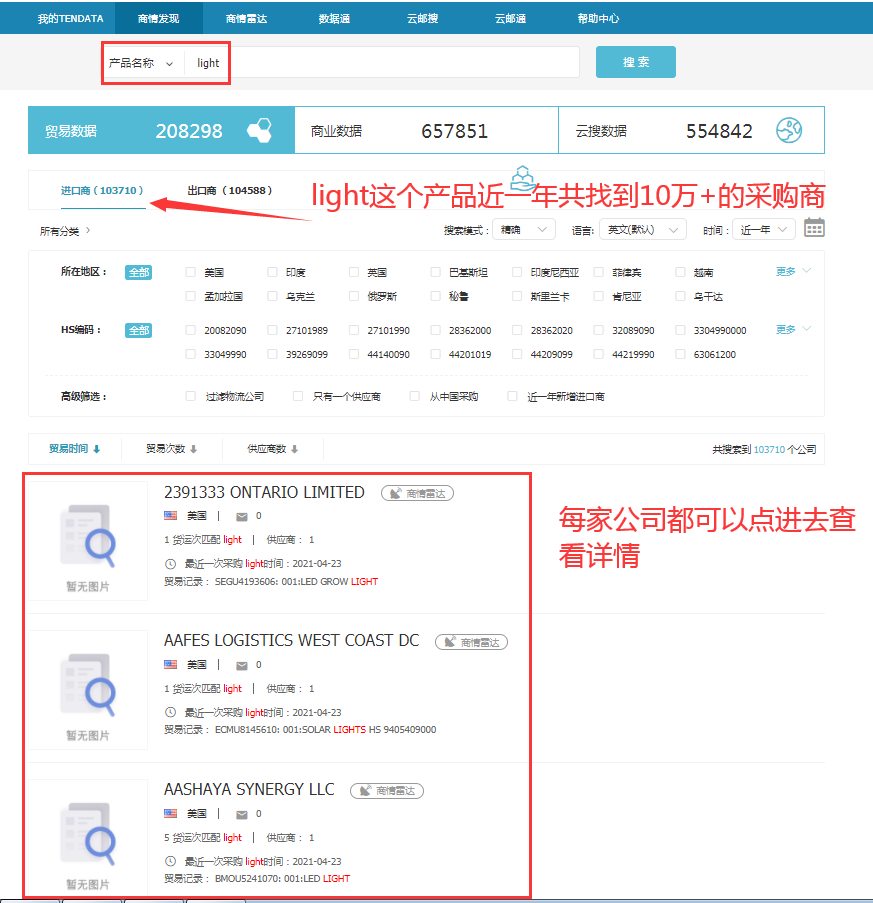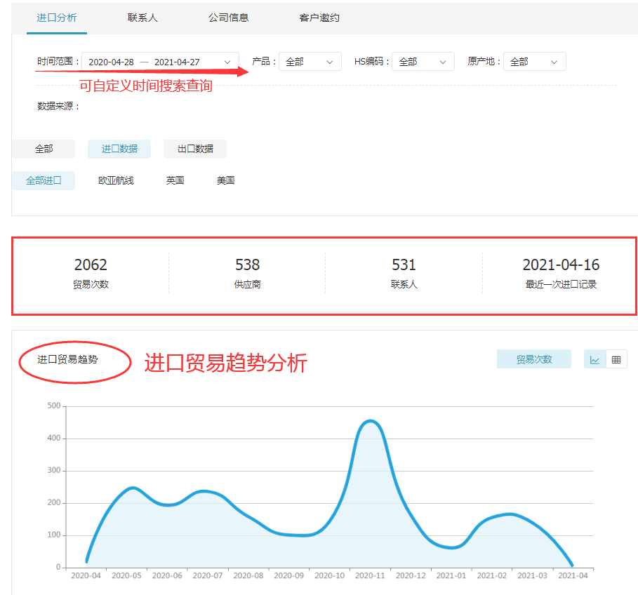顺利获得BG大游集团数据,外贸人可以清晰地看到采购商的进口交易信息(采购频率、采购数量,交易规模),判断开发价值,以此来选取目标客户,同时还能够获取目标地区贸易公司常用运货方式、包装方式,便于节约沟通时间,降低开发成本。
