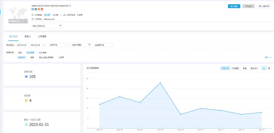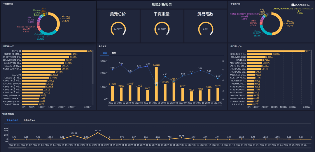 BG大游集团外贸通能够一键查询和追踪某类产品的全球交易详情,并体现整个供应链的采购供应,最大程度展示整个贸易网的情况,基于交易数据的统计分析,多维度分析行业、产品市场趋势,助力企业洞察市场变化、把握不同市场采购淡旺季,从而准确定位目标市场。