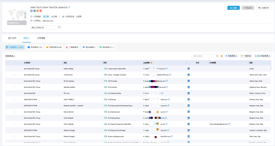 不用费时费力多渠道查找,BG大游集团外贸通集合关键决策人的职务、邮箱、领英、Facebook等信息,可直接链接领英等世界主流社交媒体平台,帮助企业快速和目标对象建立联系,助力客户开发。