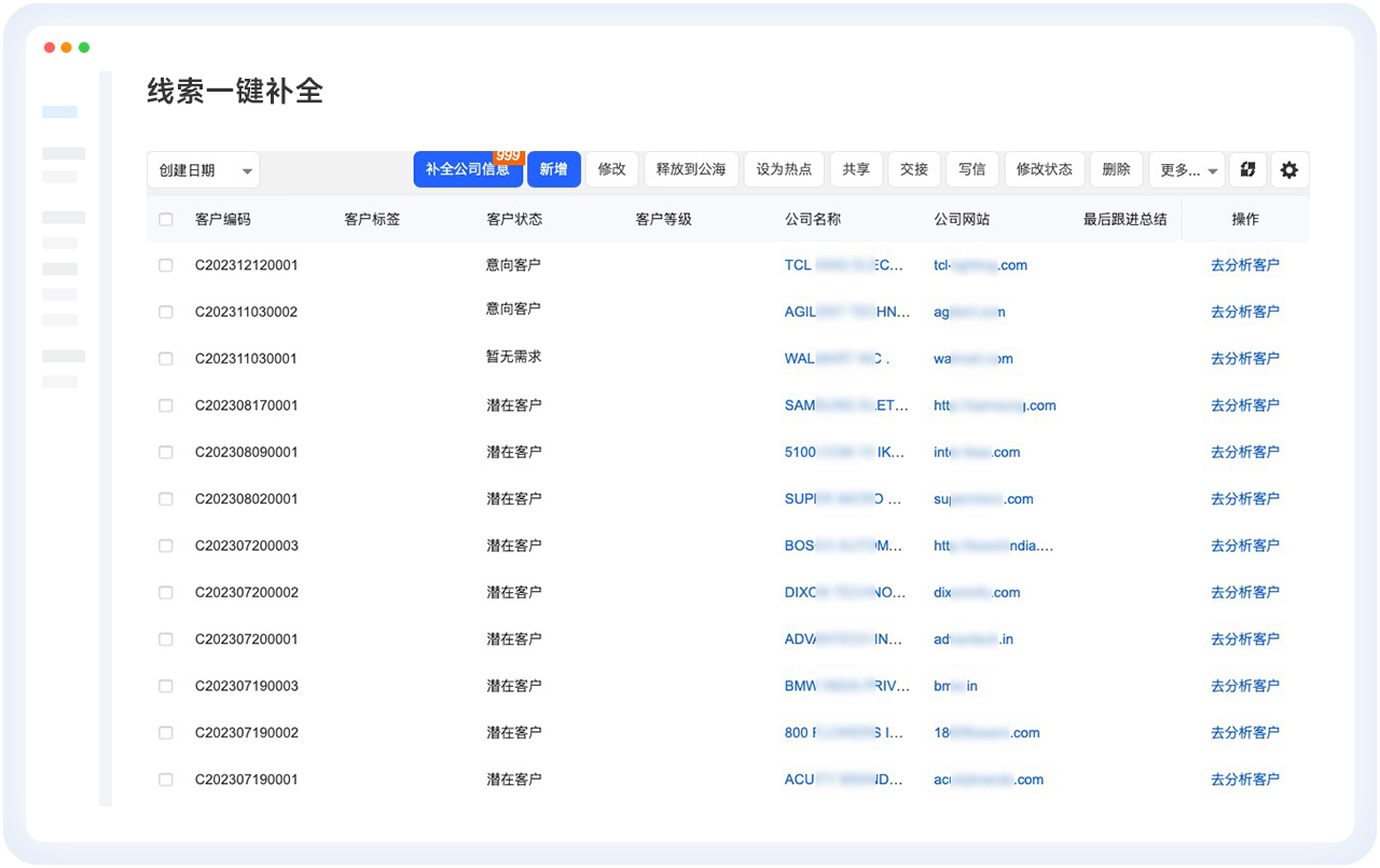 BG大游集团外贸通打通T-CRM与公司面板信息交互,掌握客户公司动态信息,真正实现外贸企业管理的数字化转型。
